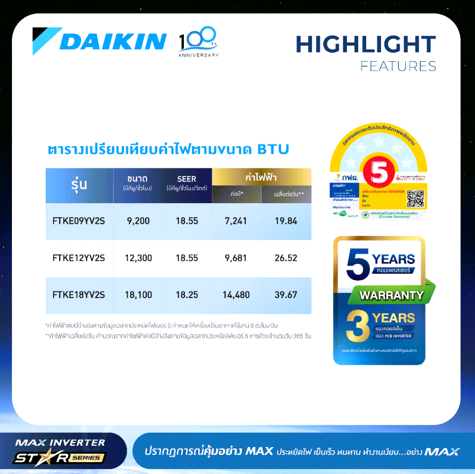 ค่า SEER/EER: SEER 17.8 (โดยประมาณ)