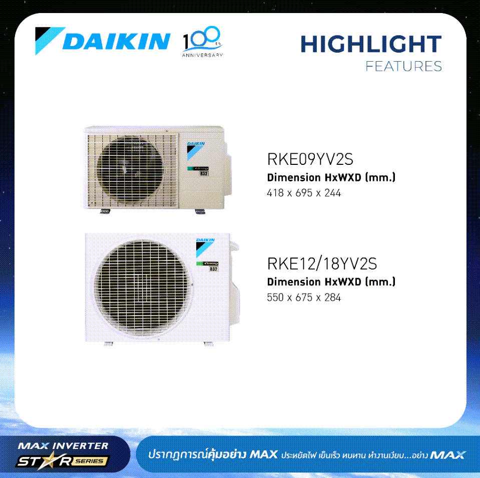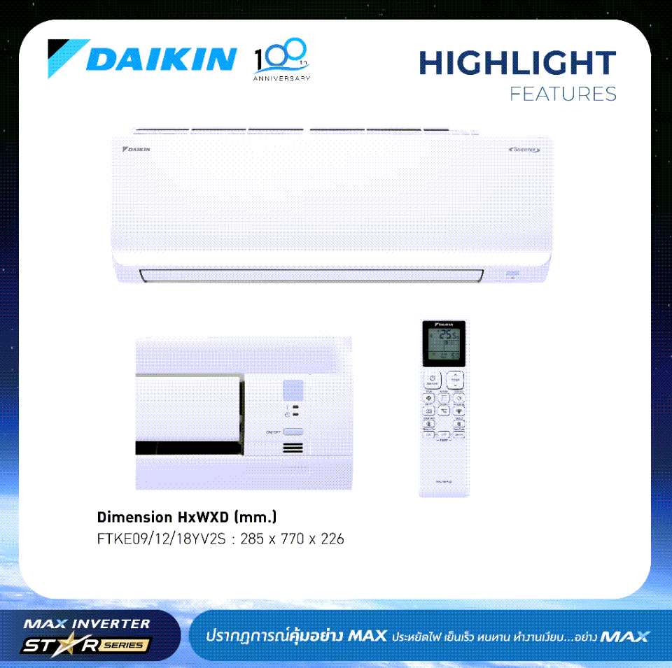 Daikin MAX INVERTER (STAR KE SERIES) FTKE-Y 9000-18000 BTU